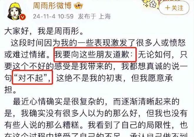 在他致歉往常,周雨彤所作念出的说念歉也激起了不小的浪潮。
