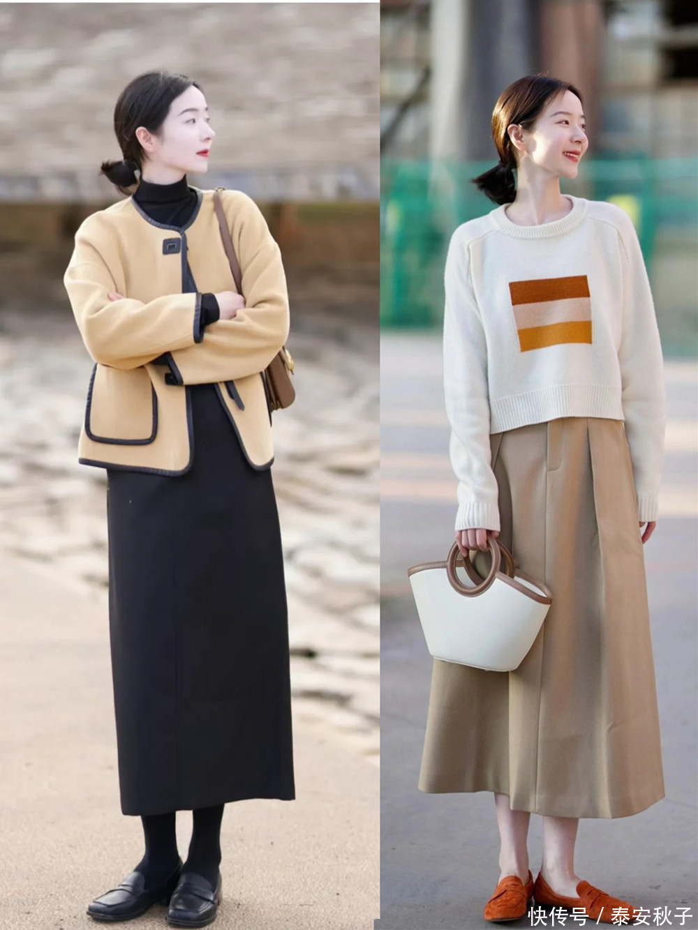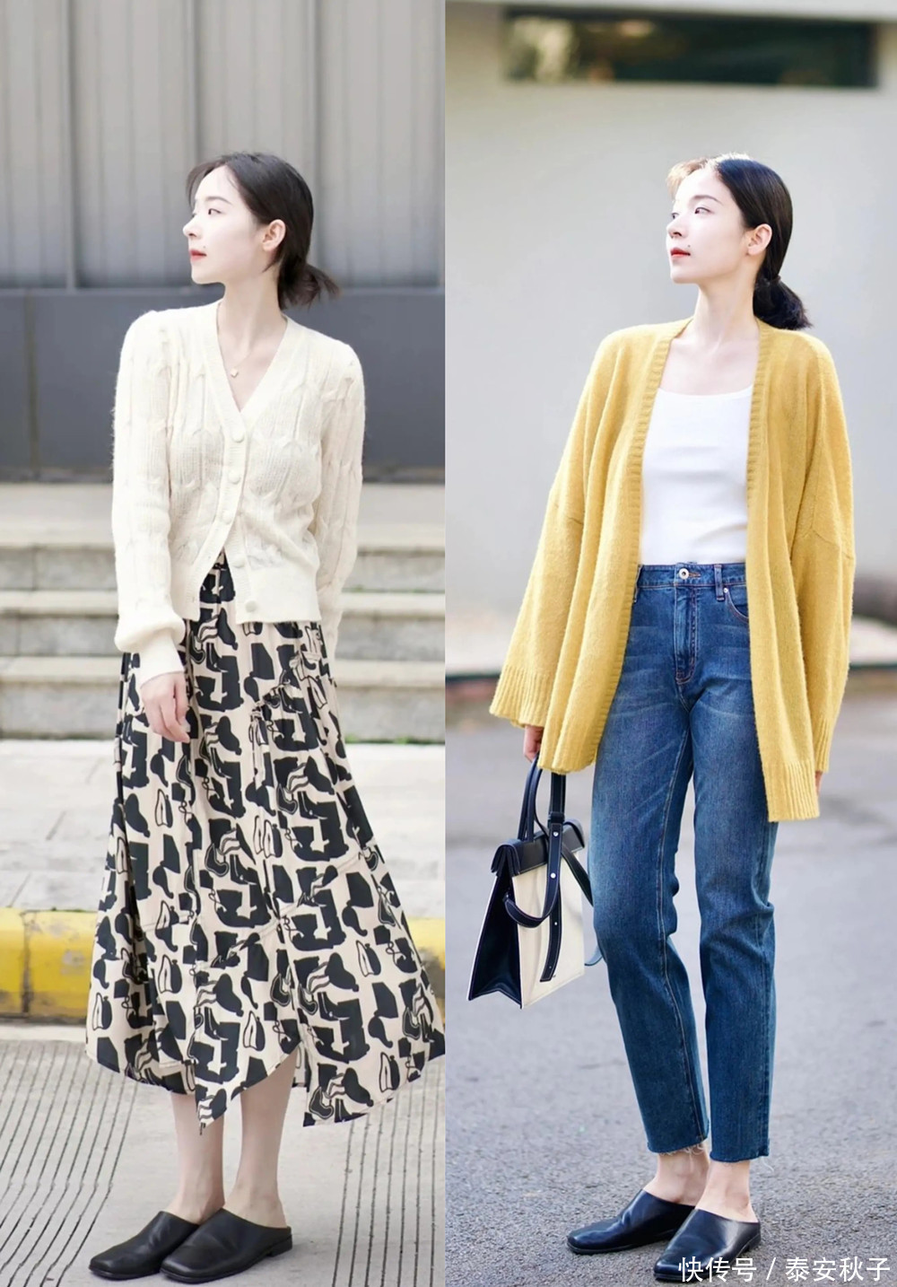 复旧又显温雅的真挚开衫+半身裙/裤的组合形态,又在这个秋日里火了起来。